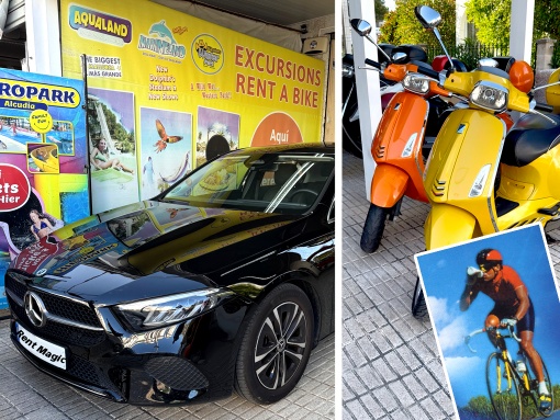 si quieres explorar la isla con coche, hacer una vuelta en el norte con scooter o visita las cercanas de Alcúdia con una bicicleta